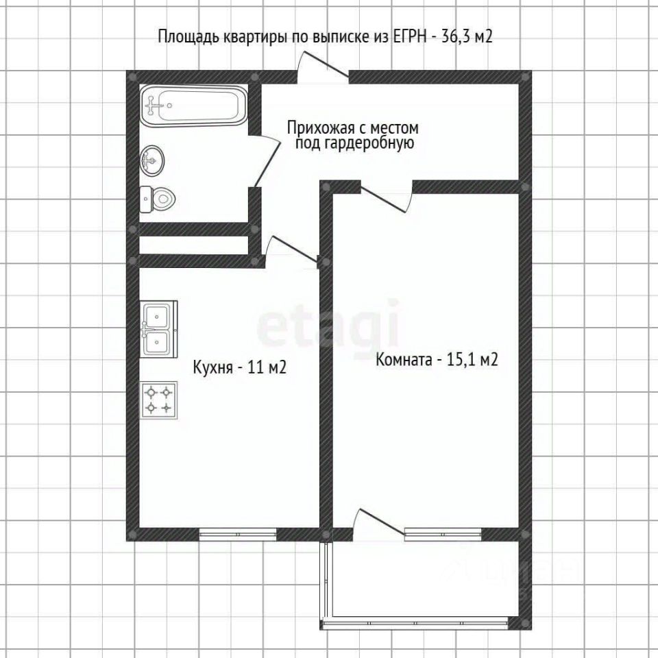 Умная планировка, ни одного бесполезного квадратного метра, зона под хранение одежды и сезонных вещей и просторный санузел. Эту квартиру стоит рассмотреть.