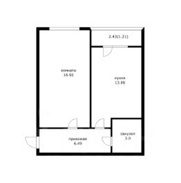 Квартира с комфортной планировкой, кухня 13кв.м. + комната 16,9кв.м.