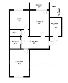 Отличие от многих планировок тем, что ту гардеробную, которая имеется в одной из комнат, сделали кладовкой со входом из подъезда, очень удобно хранить много вещей не в квартире. При желании, можно вернуть обратно в гардеробную со входом из комнаты.