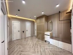 В квартире выполнен высококачественный ремонт и она полностью готова к заселению. В стоимость входит вся мебель, включая встроенную бытовую технику, что является значительным преимуществом. Квартира расположена на 13 этаже 24-этажного дома в жилом комплексе "Достояние", окна выходят во двор и на улицу.