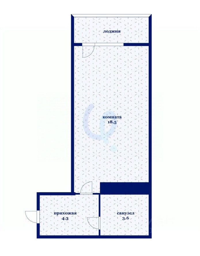 Общая площадь: 29,5 м² (26,4 м² + лоджия 3,14 м²)