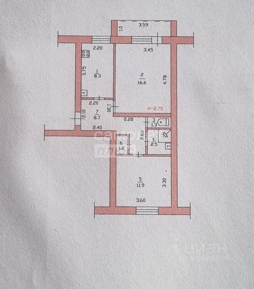 Площадь квартиры составляет 50,4 квадратных метра. Комнаты просторные: 16,5 м² и 11,9 м², санузел раздельный, что удобно для проживания двух и более человек.