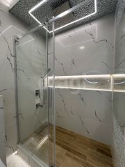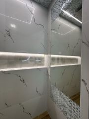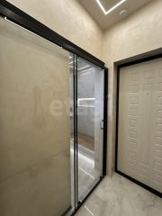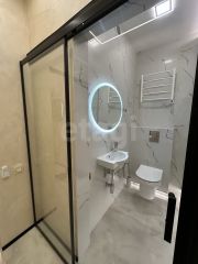 В квартире сделан современный ремонт, который включает в себя напольное покрытие из керамогранита, в сан узле уложен керамогранит и мозайка, так же установлен тропический душ. Теплые полы в коридоре, сан узле, кухонной зоне и лоджии. На стенах веницианская штукатурка. Новым собственникам остается вся необходимая мебель и техника: стиральная машина с сушкой - Haier, сплит система Bally, кухонный гарнитур, варочная панель, микроволновая печь, диван, телевизор, полка под телевизором, холодильник Haier, шкаф, барные стулья.