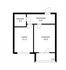 Большая комната и кухня, просторная прихожая, позволяющая оборудовать вместительную гардеробную, санузел совмещенный, есть застекленная лоджия.