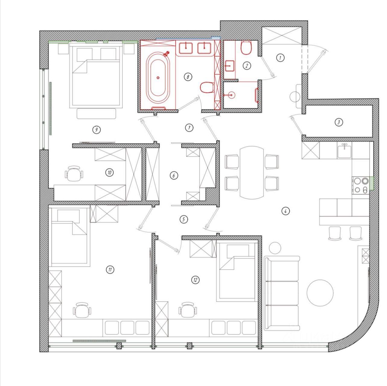 В квартире частично выполнен ремонт, разведена электрика, имеются батареи отопления, везде полы с подогревом с возможностью их регулирования по зонам, стены подготовлены под оклейку обоями, установлена новая дверь с отличной тепло и шумоизоляцией. В подарок Покупателю оставим стройматериалы для завершения ремонта квартиры.