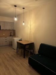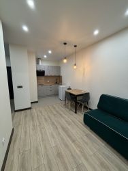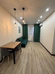 Общая площадь квартиры составляет 35.8 м², из которых 11.2 м² занимают светлая жилая комната, а просторная кухня площадью 15.4 м² позволит вам готовить любимые блюда с комфортом. Квартиру выделяет евроремонт, выполненный с использованием качественных материалов, а на пол уложен натуральный паркет. Раздельный санузел и уютная сидячая ванна создадут вам максимум удобства в повседневной жизни. Балкон (лоджия) с видом на зеленый двор подарит возможность наслаждаться свежим воздухом и природой.