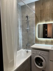 Квартира расположена на 12-м этаже 24-этажного дома бизнес-класса, который был сдан в эксплуатацию в 2022 году и находится в собственности. Внутреннее благоустройство дома включает в себя один пассажирский и один грузовой лифт, а также охраняемую парковку. Вход в подъезд осуществляется со двора, что гарантирует вам спокойствие и уверенность в безопасности вашего проживания.