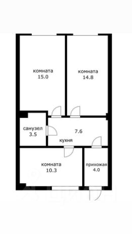 Простор: 61 м² общей площади, три изолированные комнаты.