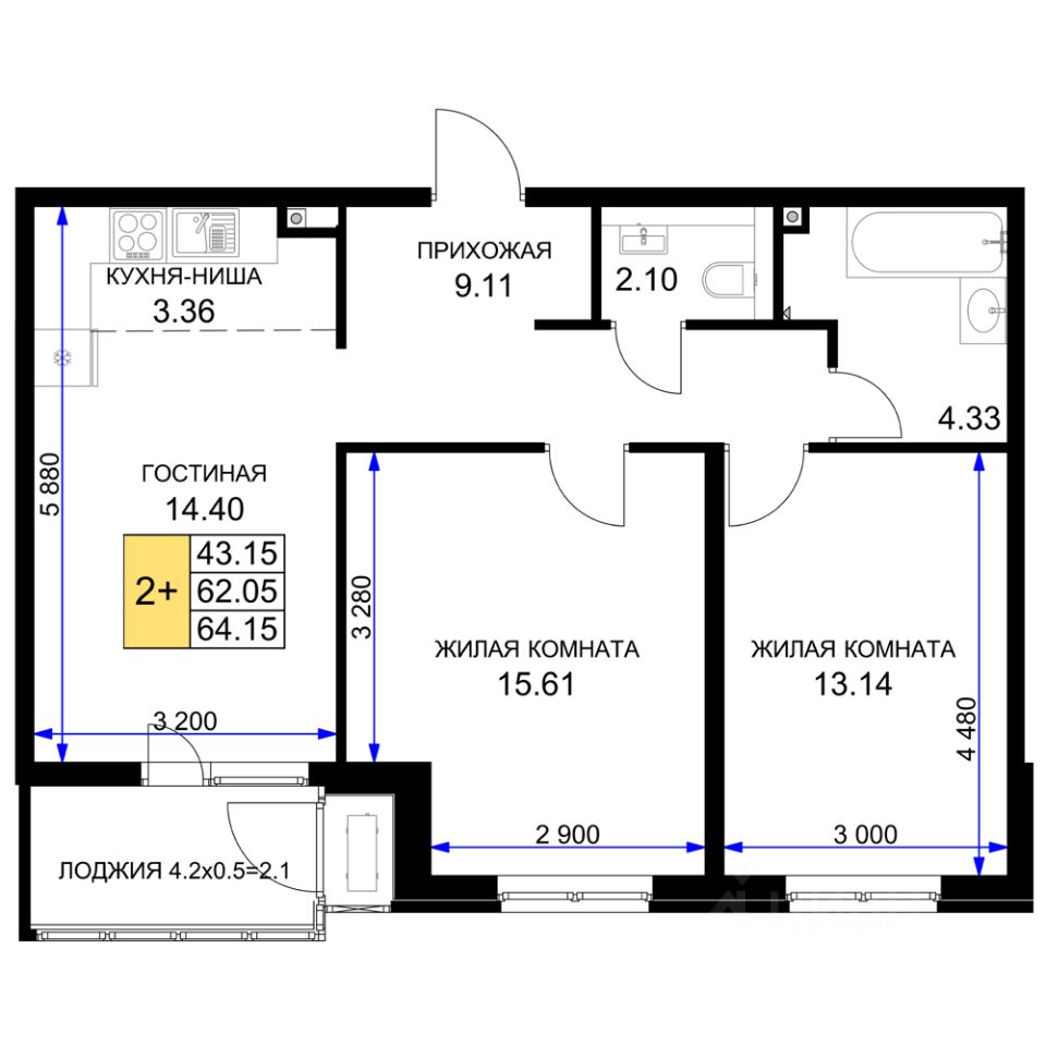 Продаётся 2-комнатная квартира в сданном доме (Литер 5), срок сдачи: I-кв. 2025, общей площадью 64.15 кв.м., на 2 этаже. Помимо собственных преимуществ жилого комплекса "Клубный Квартал", к ним добавляются преимущества его расположения! В непосредственной близости от нашего комплекса (в пределах 2 км.) расположены 2 школы, рынок и ТРК "Красная площадь", и это лишь основные из дополнительных преимуществ комплекса. Огромным плюсом к парковой зоне добавляется и закрытие двора от автотранспорта, за исключением транспорта обслуживания (уборочные и моечные машины). Жилой комплекс огромен, и площадь двора ничуть не меньше - 6,8Га прогулочной и зеленой зоны. Двор можно назвать рощей или парком - территория закрыта, 50% территории в зеленых насаждениях, имеются скамейки и беседки. В общем имеется все для прогулки и отдыха. Масштаб жилого комлекса позволил нам организовать огромную парковую зону во внутреннем дворе. Размер двора составляет 84м в ширину и 850м в длину. Площадь парковой зоны составляет 3.4 Га. Весь парк пронизан троруарными дорожками и насыщен зелеными насаждениями, среди всей это красоты размещены лавочки и беседки, позволяющие укрыться от дождя в дождливую погоду. В "Клубном Квартале" никогда не забывали про необходимость парковочных мест! Именно поэтому было принято решения организовать огромнейшую подземную парковку. ЖК рассчитан на 2880 квартир, и мы построили 2280 парковок с кладовыми. Подача лифта осуществляется прямо на парковочный, нулевой, этаж - это делает подземный паркинг еще удобнее, по сравнению с другими. Помимо поздемного паркинга, еще имеется 1300 парковок по внешнему периметру жилого комплекса. Такое количество парковочных мест гарантирует - места хватит всем, как жильцам, так и гостям жилого комплекса "Клубный Квартал"!