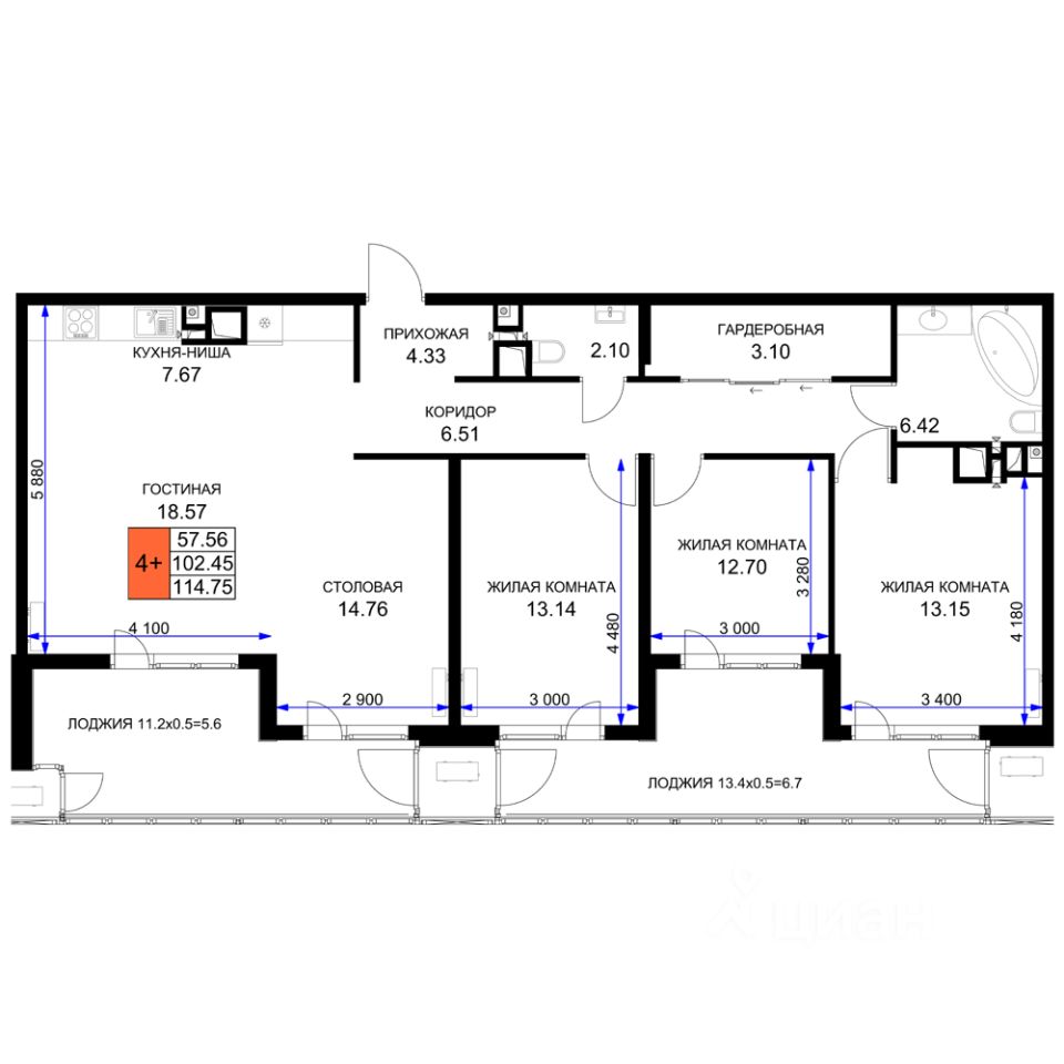 Продаётся 4-комнатная квартира в сданном доме (Литер 5), срок сдачи: I-кв. 2025, общей площадью 114.75 кв.м., на 16 этаже. Помимо собственных преимуществ жилого комплекса "Клубный Квартал", к ним добавляются преимущества его расположения! В непосредственной близости от нашего комплекса (в пределах 2 км.) расположены 2 школы, рынок и ТРК "Красная площадь", и это лишь основные из дополнительных преимуществ комплекса. Огромным плюсом к парковой зоне добавляется и закрытие двора от автотранспорта, за исключением транспорта обслуживания (уборочные и моечные машины). Жилой комплекс огромен, и площадь двора ничуть не меньше - 6,8Га прогулочной и зеленой зоны. Двор можно назвать рощей или парком - территория закрыта, 50% территории в зеленых насаждениях, имеются скамейки и беседки. В общем имеется все для прогулки и отдыха. Масштаб жилого комлекса позволил нам организовать огромную парковую зону во внутреннем дворе. Размер двора составляет 84м в ширину и 850м в длину. Площадь парковой зоны составляет 3.4 Га. Весь парк пронизан троруарными дорожками и насыщен зелеными насаждениями, среди всей это красоты размещены лавочки и беседки, позволяющие укрыться от дождя в дождливую погоду. В "Клубном Квартале" никогда не забывали про необходимость парковочных мест! Именно поэтому было принято решения организовать огромнейшую подземную парковку. ЖК рассчитан на 2880 квартир, и мы построили 2280 парковок с кладовыми. Подача лифта осуществляется прямо на парковочный, нулевой, этаж - это делает подземный паркинг еще удобнее, по сравнению с другими. Помимо поздемного паркинга, еще имеется 1300 парковок по внешнему периметру жилого комплекса. Такое количество парковочных мест гарантирует - места хватит всем, как жильцам, так и гостям жилого комплекса "Клубный Квартал"!
