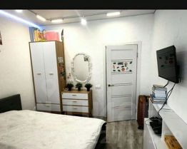 Сделан косметический ремонт, осталось натянуть потолки в гостинной. Всю проводку поменяли во всей квартире. Замечательные соседи