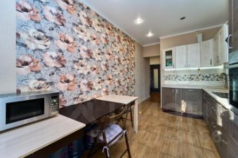Планировка комфортабельная: широкая кухня 11,5 м2 со всей необходимой качественной техникой (посудомойка, варочная поверхность, духовой шкаф, измельчитель отходов, холодильник, вытяжка). Застекленная и утепленная лоджия со встроенным шкафом для хранения. Совмещенный санузел с большой ванной.