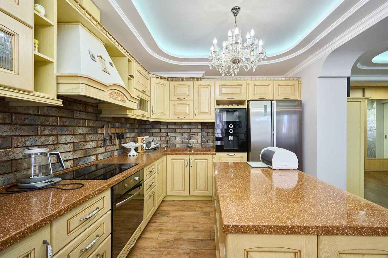 Кухонный гарнитур со встроенной техникой : варочная индукция, духовой шкаф, посудомоечная машина, вытяжка, телевизор.