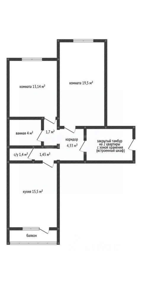 Площади комнат значительны, что позволяет комфортно расставить мебель и создать функциональное жилое пространство.