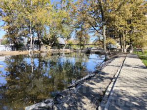 Во дворе детская площадка, сквер с зарыбленным прудом