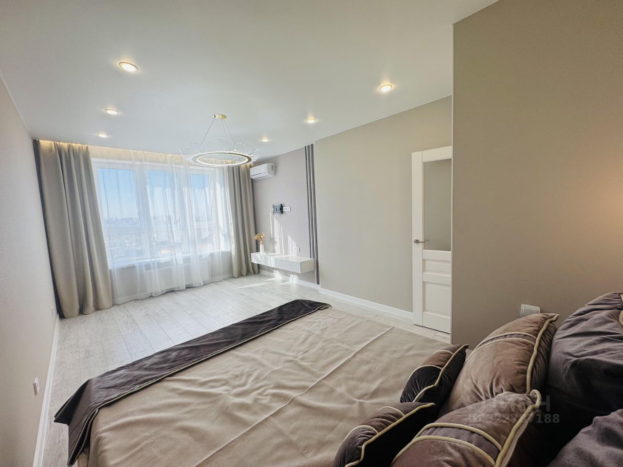 Кровать + ортопедический матрас Аскона . Комнаты раздельные.Очень солнечная и теплая, просторный балкон.