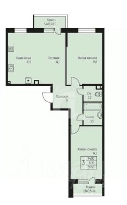 1 лоджия, 1 балкон