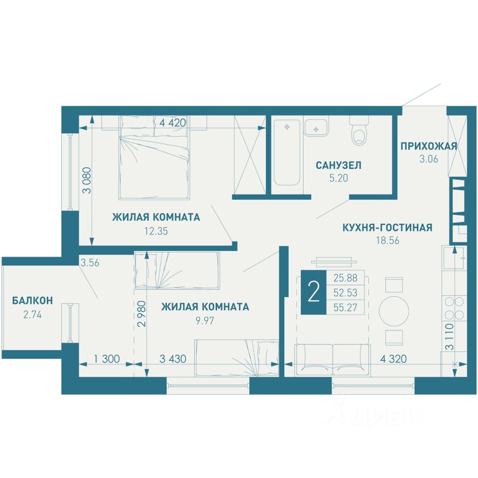 Продается 2 комнатная квартира площадью 55.27 кв. м. на 5 этаже 9 этажного дома, 1 подъезд, номер 34. Стоимость данного лота включает в себя ремонт, мебель и технику. Будут представлены 3 варианта обустройства квартиры: светлый, тонированный и авторский. Для более подробного ознакомления вы можете обратиться в отдел продаж. Жилой комплекс "ИНАЧЕ в Молодежном" включает в себя 14 домов комфорт+ класса переменной этажности с более чем 100 видами планировок, в том числе квартиры с террасами, двухуровневые квартиры и урбан виллы, детский сад на 350 мест, храм, 2 наземных паркинга, а также бульвар и прогулочные аллеи. Срок сдачи первой очереди 4 квартал 2026 года Жилой комплекс находится в Молодежном — тихом микрорайоне с атмосферой размеренной жизни. Рядом расположен зеленый сквер "Изумрудный" с зелеными деревьями и велодорожками.