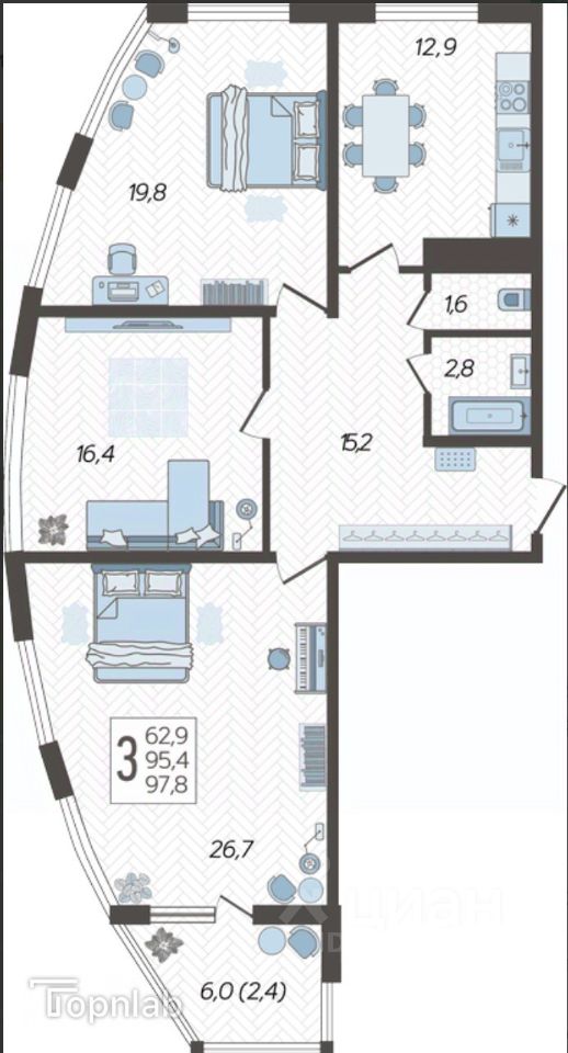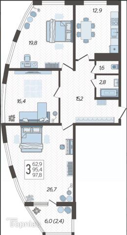 Арт. 119154793 Продаётся просторная и уютная 3-комнатная квартира в самом зелёном районе Краснодара!