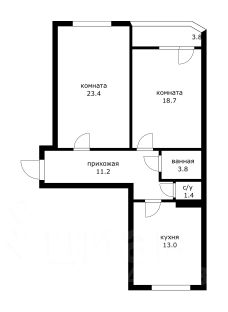 Квартира имеет отличную планировку на две стороны дома (бабочка). Две большие изолированные просторные жилые комнаты (23,4 кв.м. и 18,7 кв.м.), квадратная кухня 13 кв.м., раздельный санузел добавит удобства в повседневной жизни, большая прихожая 11,2 кв.м. длиной 5,5 метров. Высота потолков 2,8 метров создают ощущение пространства и свободы.