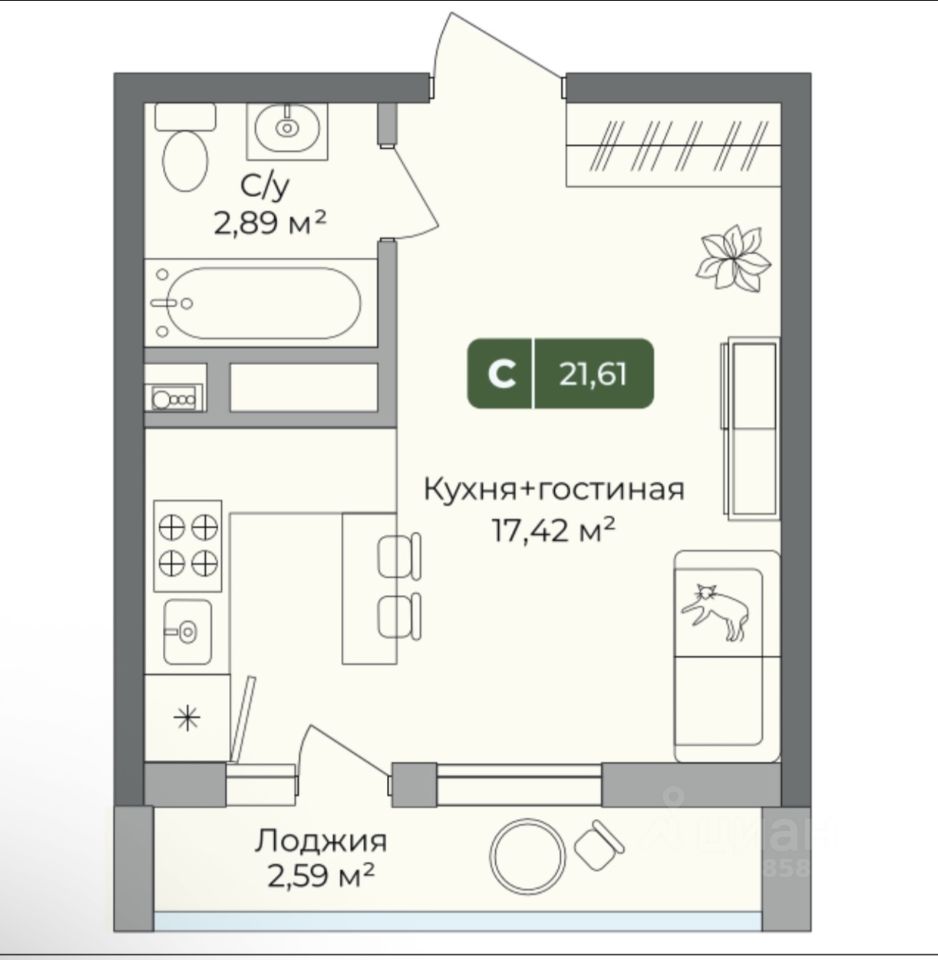 Студия в ЖК Цитрус (район Любимого) через дорогу ТЦ, кинотеатр, в шаговой доступности остановки, удобная транспортная развязка