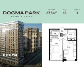 В продаже 1-комнатная квартира от застройщика! Мкр. "DOGMA PARK" г. Краснодар, Литер 16 Срок сдачи: 4 кв. 2027, общей площадью 37.3 кв.м., на 12 этаже.