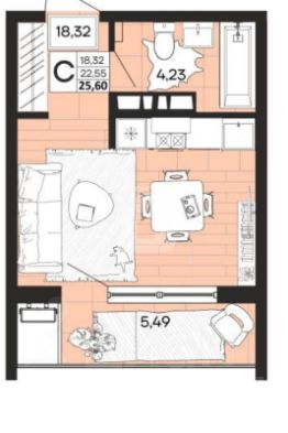 В продаже студия с готовым ремонтом в новом ЖК "Народные Кварталы"
