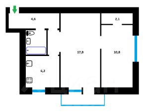 44,5/28,6/6,2 + балкон по 3,4 кв.м. (в общую площадь не входит);