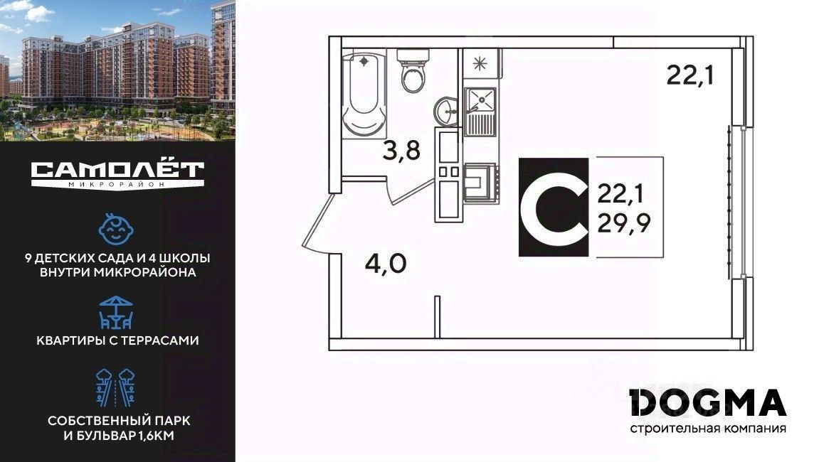 Студия в ЖК "САМОЛЁТ", г. Краснодар