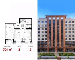 Общая площадь квартиры - 70.1 кв.м., расположена на 3 этаже. ЖК "ПАРК ПОБЕДЫ" - это монументальная архитектура, вдохновленная архитектурным наследием страны - сталинский ампир, который отличает классические пропорции и четкость линий. В ЖК реализованы такие современные технологии, как безбарьерная среда, сквозные подъезды, авторские лобби, квартиры с панорамным остеклением.