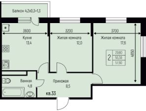 Продаётся 2-комнатная квартира в строящемся доме (Литер 9), срок сдачи: IV-кв. 2025, общей площадью 57.6 кв.м., на 3 этаже. Новый жилой комплекс "Nova Vita" от застройщика МЕТРИКС DEVELOPMENT расположен по адресу Краснодар, посёлок Берёзовый, улица имени А.Н. Лодыгина.