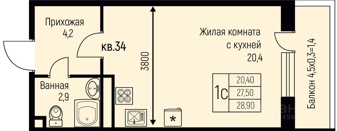 Продаётся студия в строящемся доме (Литер 9), срок сдачи: IV-кв. 2025, общей площадью 28.9 кв.м., на 3 этаже. Новый жилой комплекс "Nova Vita" от застройщика МЕТРИКС DEVELOPMENT расположен по адресу Краснодар, посёлок Берёзовый, улица имени А.Н. Лодыгина.