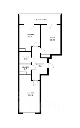 В продаже 2комнатная квартира площадью 55 м2. Планировка на 2 стороны.