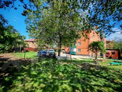 Территория огорожена, въезд только для жильцов, сквозного проезда нет. Видеонаблюдение и большая парковка, детская площадка.
