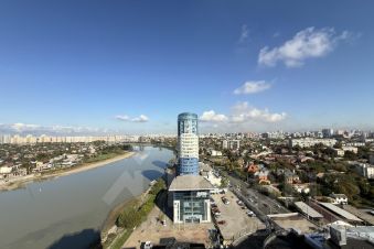 19 этаж, панорамные окна во всю стену и вид на реку Кубань и исторический центр города.