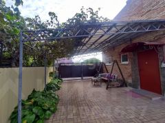 Двор частично выложен плиткой. На территории имеется навес, летний душ, баня - бочка. Гараж со смотровой ямой для автомобиля. Также имеется выделенный участок земли под огород. Поселок находится в черте города, до центра Ейска четыре километра. Удобное расположение позволит Вам использовать все преимущества инфраструктуры: детский садик, школа, почта, амбулатория, клуб, продуктовые магазины. Остановка общественного транспорта в шаговой доступности.