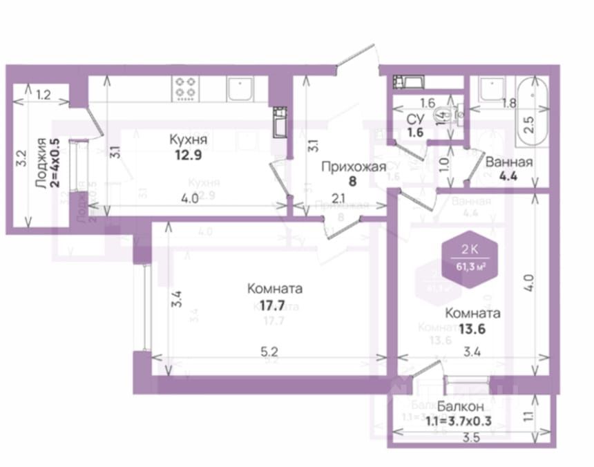 Общая площадь квартиры составляет 61.3 кв. м, из которых 31.3 кв. м приходится на жилую зону, а кухня занимает 12.9 кв. м. Квартира расположена на 12 этаже 22-этажного монолитного дома.