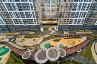 Все свои - это 9 разноуровневых каскадных домов Комфорт-класса высотой от 19 до 23 этажей. Дома имеют сейсмоустойчивость 7 баллов, в подъездах предусмотрена установка 3 скоростных лифтов: 1 грузовой и 2 пассажирских. Подача горячей воды и отопление всего комплекса обеспечивает собственная котельная.