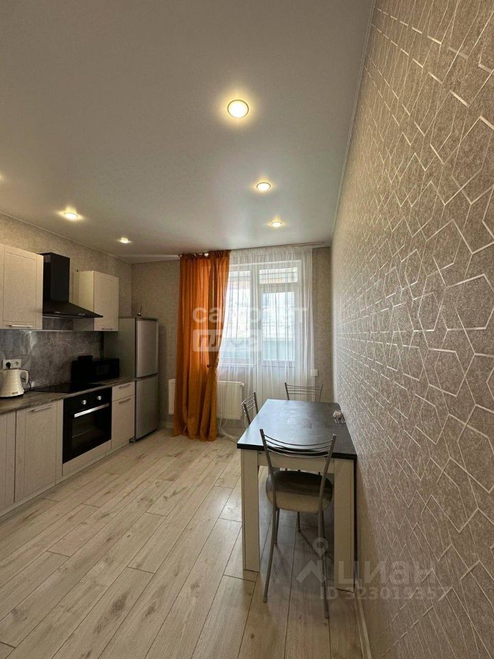 - Современная кухня оборудована всей необходимой техникой, включая варочную панель, духовой шкаф, холодильник и удобную рабочую зону.