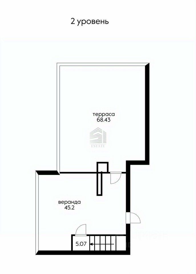 Квартира двухуровневая, с витражным остеклением, предчистовой отделкой и возможностью создать уникальное дизайнерское пространство. На первом уровне — гостиная, кухня, изолированные комнаты; на втором — свободная планировка и выход на открытую террасу, где можно устроить зону отдыха, барбекю или мини-сад.