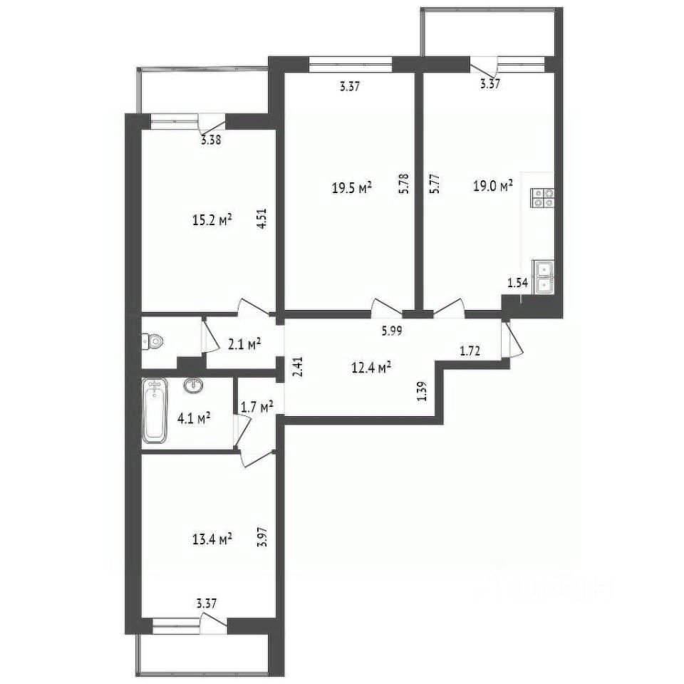 19 м²