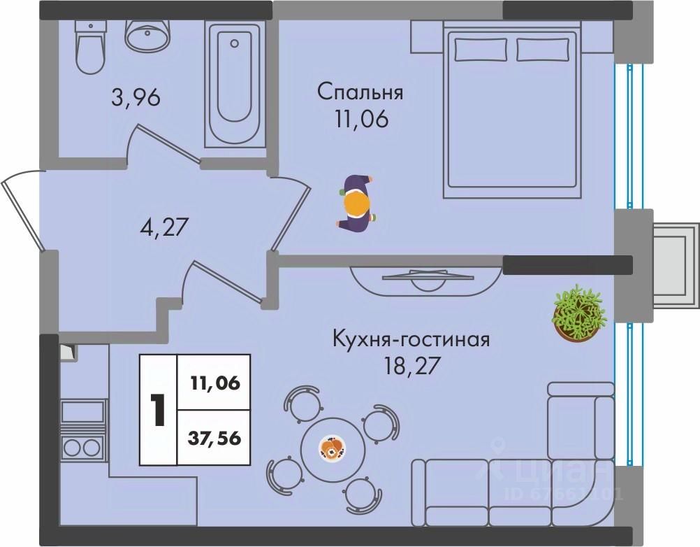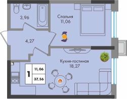 1-комнатная квартира, как 2-комнатная в жилом комплексе Зеленая территория от надежного застройщика СЗ Флагман в Краснодаре.