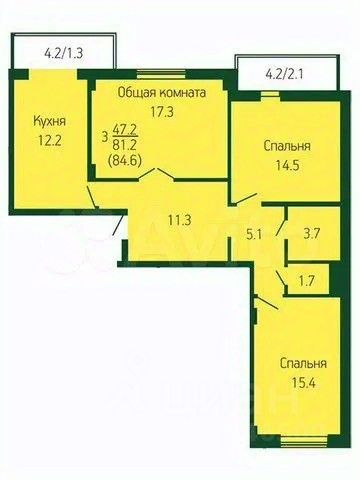 Грамотная планировка: изолированные комнаты 17/14/15 кв.м.
