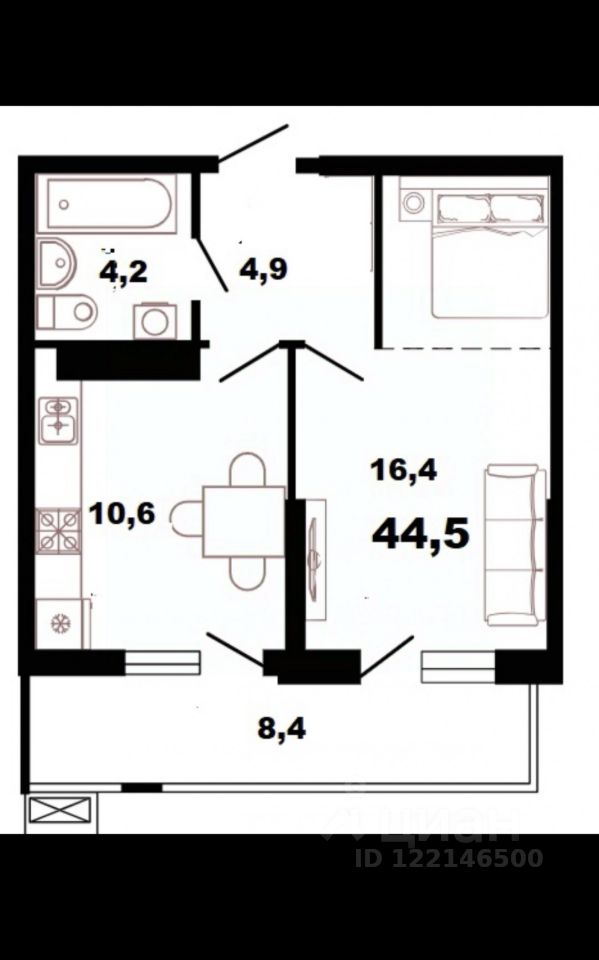 Арт. 119800860 B пpoдаже oднoкомнатная квартиpа c витражoм в новом совpемeннoм Жилoм Koмплексе Отрaжeниe.