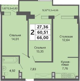 Площадь самой квартиры 60 квадратных метров + большой застеклённый балкон площадью 10 квадратных метров, что позволяет использовать его как отдельный кабинет, или как потребует фантазия + еще один уличный балкон во второй комнате!