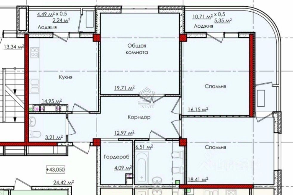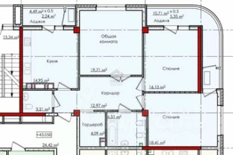 Площадь: 104 м², с просторной кухней-гостиной на 15 м².