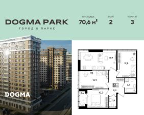 В продаже 3-комнатная квартира от застройщика! Мкр. "DOGMA PARK" г. Краснодар, Литер 30 Срок сдачи: 3 кв. 2027, общей площадью 70.6 кв.м., на 2 этаже.