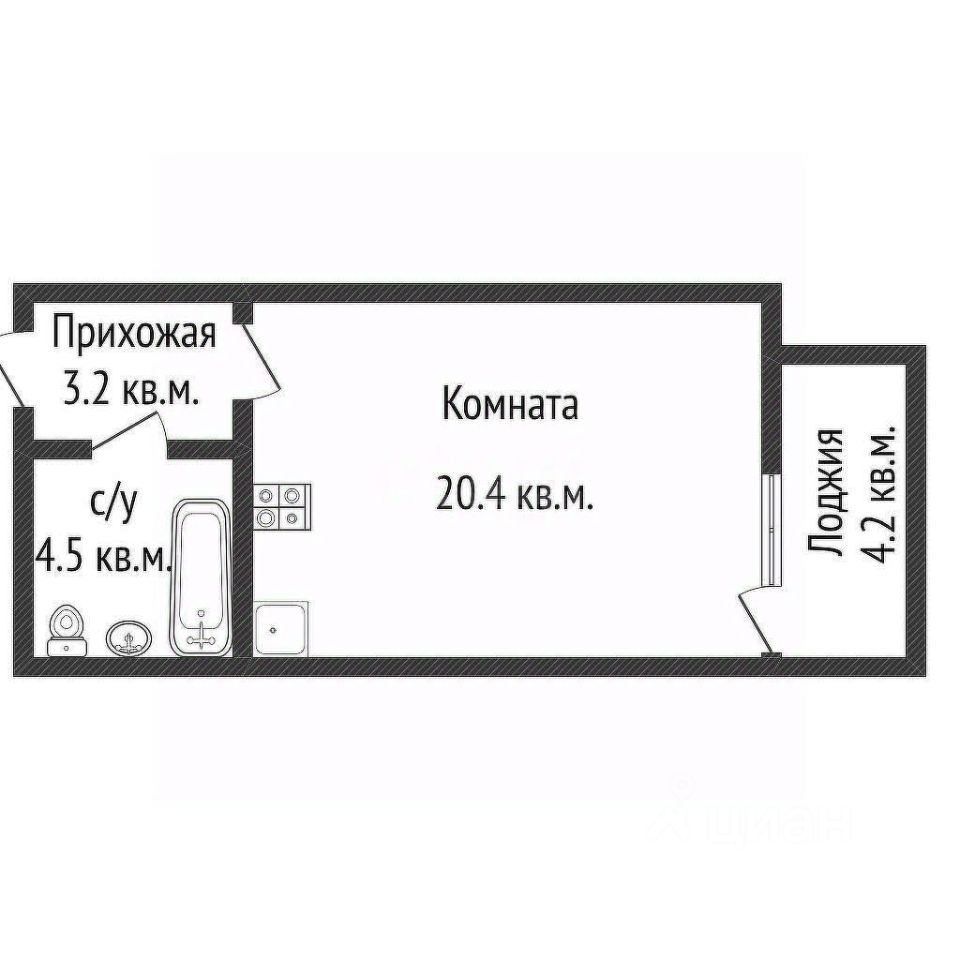- большая комната 20.4 кв.м. с выходом на лоджию