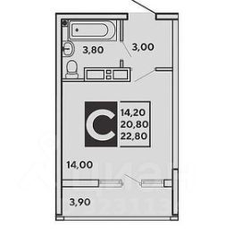 Планировка: Жилая площадь - 20м², Санузел - 3 м². А также гаpдероб при вхoдe. Квартира оснащена мебелью и техникой.