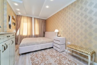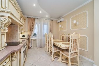 В квартире сделан современный, качественный ремонт. В классическом стиле в спокойных бежевых оттенках. Сделан дорогостоящий ремонт, вся мебель, межкомнатные двери, ставни выполнены из натурального дерева- массива дуба, окрашенных на заказ в едином стиле. Общая площадь 103 кв. м.